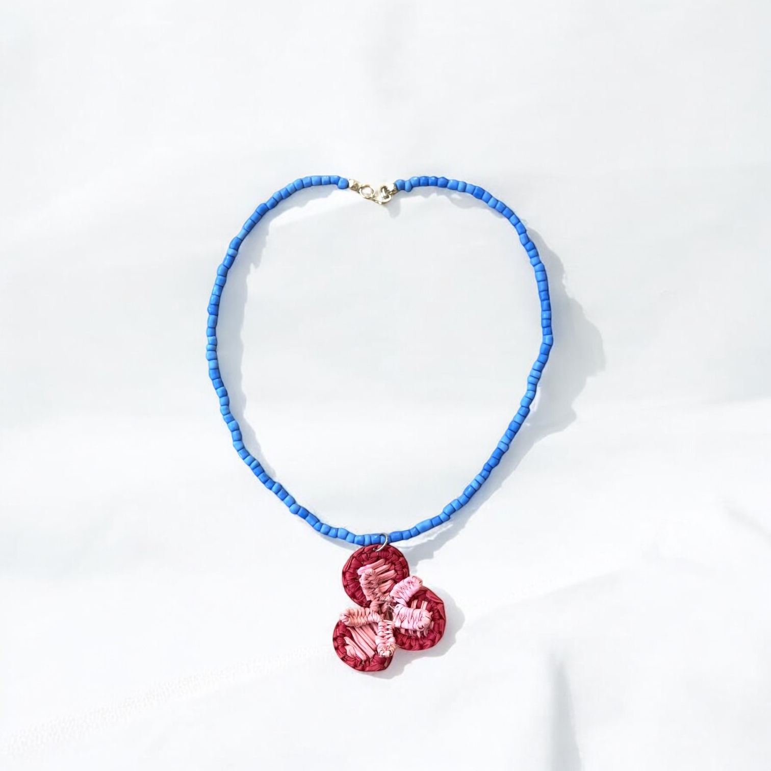 Collar de mullos azul agua con dije mediano de flor tejida a mano en paja toquilla. Una combinación fresca, artesanal y vibrante que transforma cualquier look. Evita el contacto con agua, perfumes y exceso de sol para cuidar los mullos y la fibra natural. Cada pieza está hecha a mano, por eso puede presentar ligeras variaciones respecto a la foto. Esa es justo la magia: no hay dos iguales.